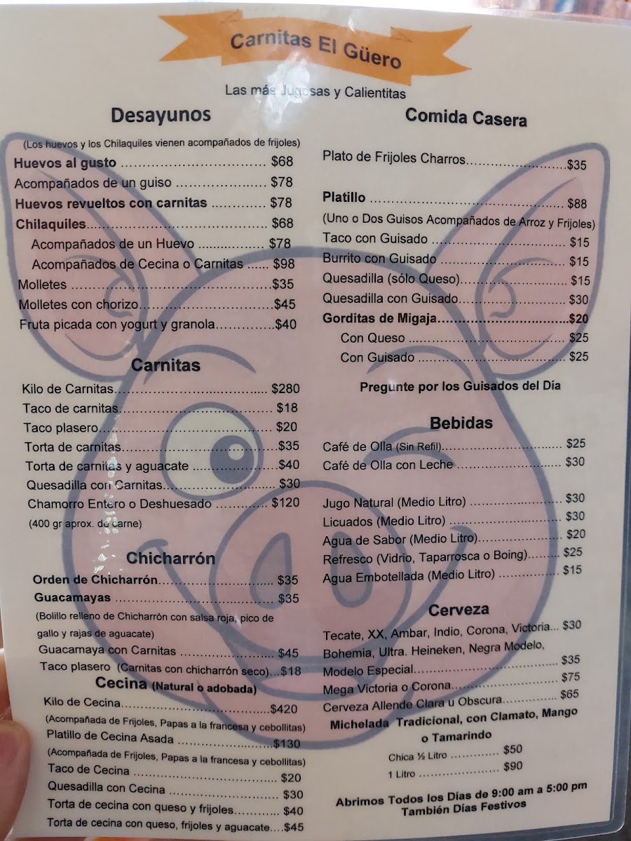 Introducing the menu at Carnitas El Guero, a beloved gem nestled in the heart of San Miguel de Allende. Renowned for its authentic Mexican cuisine, this cozy spot is a haven for food lovers. Guests rave about the first-rate tacos, particularly the mouthwatering carnitas. Each dish is crafted with care, featuring flavors that are as vibrant as the colorful atmosphere of the restaurant.